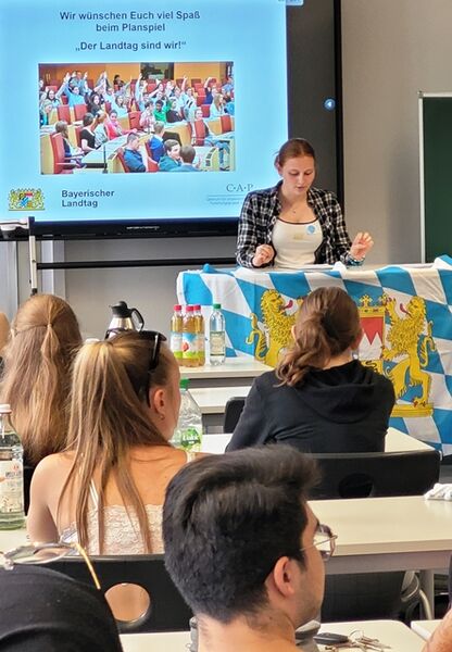 Im Juli 2023 nahmen die Klassen MFA 11c und ZFA 11b am Planspiel „Der Landtag sind wir!“ an der Berufsschule 2 teil. Dieses Angebot des Bayerischen Landtags wurde von einem Moderatorenteam der „Forschungsgruppe Jugend und Europa am Centrum für angewandte Politikforschung an der Ludwig-Maximilians-Universität München“ betreut. Die Schülerinnen und Schüler setzten sich dabei an einem Vormittag mit dem fiktiven, aber realitätsnahen Gesetzesvorhaben zum aktiven Wahlrecht ab 16 auseinander. Es ging also um politische Mitbestimmung und der Frage, wie sich Politik besser vermitteln lässt: Interessieren sich junge Menschen durch eine Absenkung des Wahlalters stärker für Politik? Sehen sie sich in der Lage, eigenverantwortlich ihr Wahlkreuz zu setzen?
