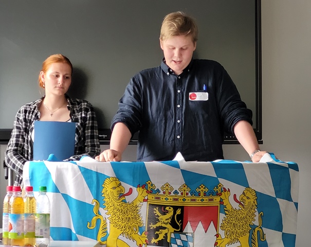 Jede Teilnehmerin, jeder Teilnehmer schlüpfte in die Rolle eines Abgeordneten des Bayerischen Landtags mit ausgedachtem Namen. So auch eine Schülerin der ZFA 11b, die als Stefanie Bauer zur 82jährigen Zahnmedizinerin aus Ansbach und Mitglied der Partei „Die Freien“ wurde. Als älteste Abgeordnete des Bayerischen Landtags durfte Stefanie Bauer die konstituierende Sitzung eröffnen, die Wahl der neuen Landtagspräsidentin leiten und eine Rede halten.