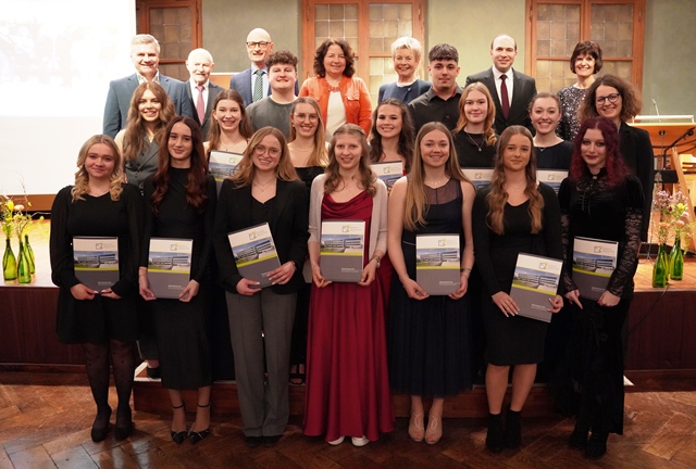 Den Höhepunkt der stimmungsvollen Feier bildeten die Zeugnisverleihung auf der Bühne sowie die Ehrung der Besten der einzelnen Ausbildungsberufe. Fünf Absolventinnen erzielten die Traumnote 1,00 im Abschlusszeugnis und wurden mit einem Geldstaatspreis bzw. dem Preis des Fördervereins und jeweils 75 € überrascht: Annika Loher, Lena Rieder, Viola Graf, Paula Schmid und Julia Thalbauer. Insgesamt schlossen 25 Absolventinnen und Absolventen ihre Schulzeit mit 1,5 und besser ab.