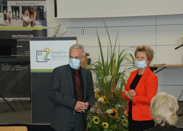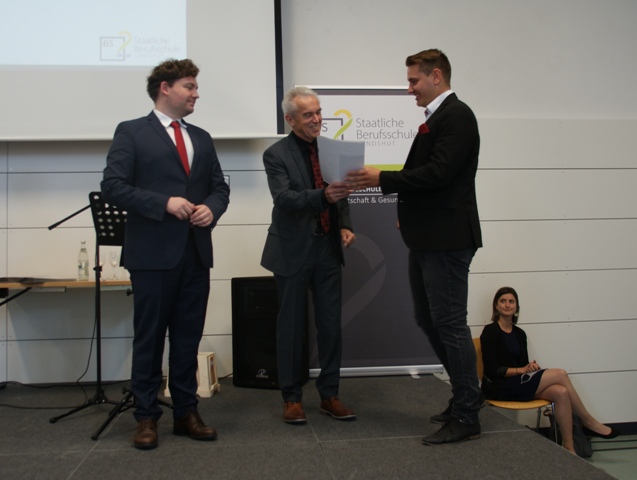 In ihrer Ansprache verglich OStDin Elisabeth Wittmann die zurückliegende Ausbildungszeit mit einer anspruchsvollen Bergtour, bei der jeder auf seinem individuellen Weg vielfältige Herausforderungen bezwingen und ein hohes Maß an Durchhaltevermögen unter Beweis stellen musste. Mit dem erfolgreichen Abschluss sei nun auch der Gipfelanstieg bravourös geglückt. Die sichtlich stolze Schulleiterin wünschte den Preisträgerinnen und Preisträgern für ihre Zukunft Offenheit für neue Etappen, den Mut ausgetretene Wege zu verlassen und Neugierde für viele weitere Touren in einem hoffentlich glücklichen Leben. Auch der 2. Bürgermeister der Stadt Landshut Dr. Thomas Haslinger übermittelte in seinem kurzweiligen Grußwort seine Glückwünsche an die Absolventinnen und Absolventen, dankte aber auch jenen „Mitspielern“, die den Schülerinnen und Schülern während ihrer Lehrzeit mit Rat und Tat zur Seite standen.