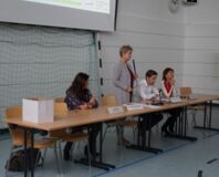 Eine digitale Schulwegbeschreibung gab es in diesem Jahr durch Frau Zeis. Die sehr anschauliche Präsentation wurde im Rahmen eines Projekts im vorletzten Schuljahr von den Verwaltungsfachangestellten erstellt. Dabei wurden beispielsweise der Schulweg und die Parkplatzsituation der Schule beleuchtet.