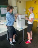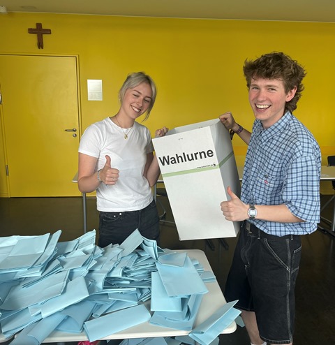 Gewählt wurde freiwillig und geheim mit Wahlkabinen und einer Wahlurne. Fleißige Wahlhelferinnen und Wahlhelfer aus der GH 10 b zählten die Stimmen aus – vielen herzlichen Dank dafür!