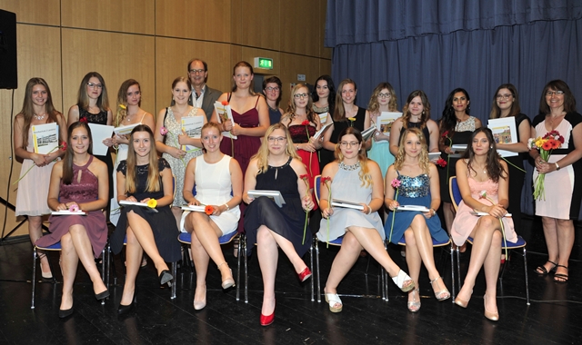 Es gab allen Grund zum Jubeln für die 110 Absolventinnen aus den Gesundheitsberufen der Staatlichen Berufsschule 2 Landshut. Gemeinsam mit zahlreichen Ehrengästen, Ausbildern, Eltern und Lehrkräften versammelten sich die festlich gekleideten Medizinischen Fachangestellten, Zahnmedizinischen Fachangestellten und Pharmazeutisch-Kaufmännischen Angestellten am Donnerstag, den 20. Juli 2017, im Ergoldinger Bürgersaal, um den erfolgreichen Abschluss ihrer Ausbildung zu feiern.