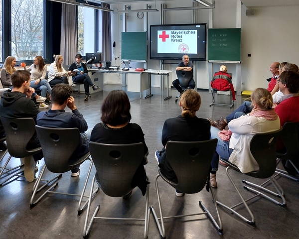 Dieses Schuljahr stand der Pädagogische Tag ganz im Zeichen der Ersten-Hilfe. In insgesamt 9 Unterrichtseinheiten á 45 Minuten schulte uns das BRK Landshut, wie man in verschiedensten Notsituationen richtig reagiert. Alle drei angebotenen Erste-Hilfe-Kurse waren proppenvoll – kein einziger Platz blieb unbesetzt.