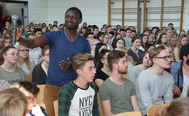 Sehr schülernah und sympathisch beantwortete unser Gast alle Fragen und ließ es sich auch nicht nehmen, „einen zweiminütigen Werbeblock für die Demokratie“ einzubauen. Er ermutigte die Schüler, demokratische Werte zu schätzen und zu erkennen, wie gut es uns in Deutschland und Europa geht. Weil die Jugend die Wahl von morgen entscheidet, sei es wichtig, zur Wahl zu gehen. „Wer nicht wählt, unterstützt extreme Kräfte!“