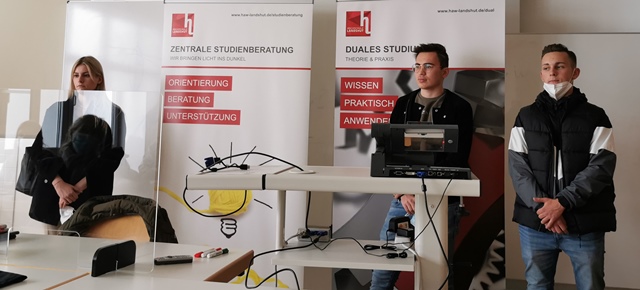 Auch über das Studentenleben an der HS Landshut erfuhren die Schüler*innen einiges. Nach dem gemeinsamen Mittagessen in der HS-Mensa gab es eine Fragestunde mit Dual Studierenden, welche von ihren Erfahrungen in und um die Hochschule berichteten. Zuletzt gab es auch noch eine 30-minütige Führung durch Studentinnen über den Hochschulcampus.