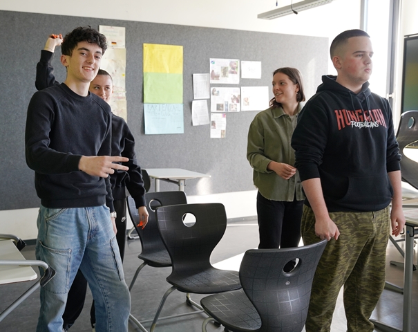 Die Schülerinnen und Schüler der BVJ/k schauten letzten Freitag nicht schlecht, als statt der erwarteten Lehrkraft der mehrfache Kickbox-Weltmeister Dominik Haselbeck in der Tür stand. Der Profisportler und Motivationscoach besuchte die Berufsvorbereitungsklasse zum zweiten Mal in diesem Schuljahr. Dem Motto von Muhammad Ali, dem Weltklasse-Boxer, folgend: „Champions werden nicht im Trainingssaal gemacht. Champions wachsen, weil sie etwas in sich haben.“ erkundeten die Schülerinnen und Schüler im Rahmen von Kick4Future zusammen mit Dominik Haselbeck ihre Stärken und Schwächen. Die Klasse erarbeitete mit verschiedenen Übungen in vier Unterrichtstunden, welche Fähigkeiten es braucht, um motiviert zu sein und Ziele zu erreichen. Der Fokus dieser Coaching-Einheit lag auf dem Thema Teamwork. Mit verschiedenen Übungen erarbeiteten die Schülerinnen und Schüler, was es braucht, um ein Team zu sein. Nach den spielerischen Übungen zur Selbsterfahrung überraschte Dominik Haselbeck die Klassen gleich ein zweites Mal, weil die Klasse noch eine spontane Trainingseinheit absolvierte.