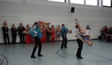 Besonders das Prinzenpaar, Ihre Lieblichkeit Isabella I. und Seine Tollität Ulrich I., verzauberte die Anwesenden mit Ihrem Prinzenwalzer zu „I believe in you“ von Celine Dion. Ein Heimspiel für Isabella Raphael, die die Berufsschule 2 noch aus ihrer eigenen Ausbildungszeit gut kennt. Auch die Showtanzeinlagen zur „Charleston Lovestory“ brachten die anwesenden Schülerinnen und Schüler zum Staunen, die teilweise zum ersten Mal eine Gardeaufführung live miterlebten. Die liebevoll zusammengestellten Kostüme machten den Auftritt zudem zu einer Augenweide.