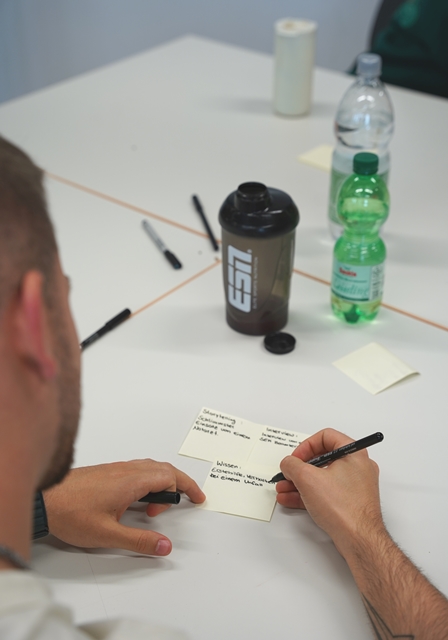 Ein zentraler Bestandteil des Tages war die gemeinsame Themenentwicklung. Mit kreativen Methoden wie beispielsweise Brainstorming mithilfe von Post-its erarbeiteten die acht Projektgruppen jeweils einen Themenpool. Im Anschluss stellte jede Gruppe ihr favorisiertes Thema in einem Pitch vor. In kurzen Fragerunden erhielten die Gruppen direktes Feedback, das ihnen bei der Schärfung und Konkretisierung ihrer Themen in den nächsten Wochen helfen wird.
