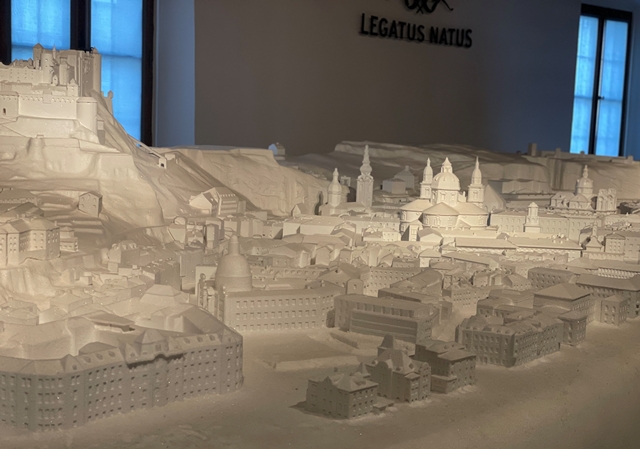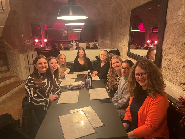 Am Montagmorgen trafen sich alle Mitreisenden bestens gelaunt am Landshuter Bahnhof. Nach ca. 2,5-stündiger Zugfahrt erreichte die 28-köpfige Reisegruppe den Hauptbahnhof in Salzburg. Gemeinsam machte sie sich anschließend auf den kurzen Fußmarsch zur Unterkunft, um dort einzuchecken und das Gepäck abzugeben. In Kleingruppen erkundeten die Schülerinnen und Schüler mittels interaktiver Führung per Smartphone die Innenstadt und genossen dabei das vorweihnachtliche Salzburg. Anschließend stand etwas Zeit zur freien Verfügung auf dem Programm, ehe man den ersten Tag bei einem gemeinsamen Abendessen in entspannter Atmosphäre ausklingen ließ.