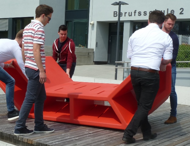 Bald nach dem Auspacken wurden die gemütlichen ENZOS von den ersten Schülerinnen „eingeweiht“. Diese finden es sehr bequem sowie angenehm warm im Vergleich zum kalten Beton und großzügig, da man in einer Gruppe Platz nehmen kann.