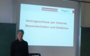 Die Referentinnen klären die Schülerinnen und Schüler über die Besonderheiten und Gefahren beim Vertragsabschluss per Internet auf. Dazu führen Sie Beispiele für die Abzockerei und spezifische Versandbedingungen im Internet an.