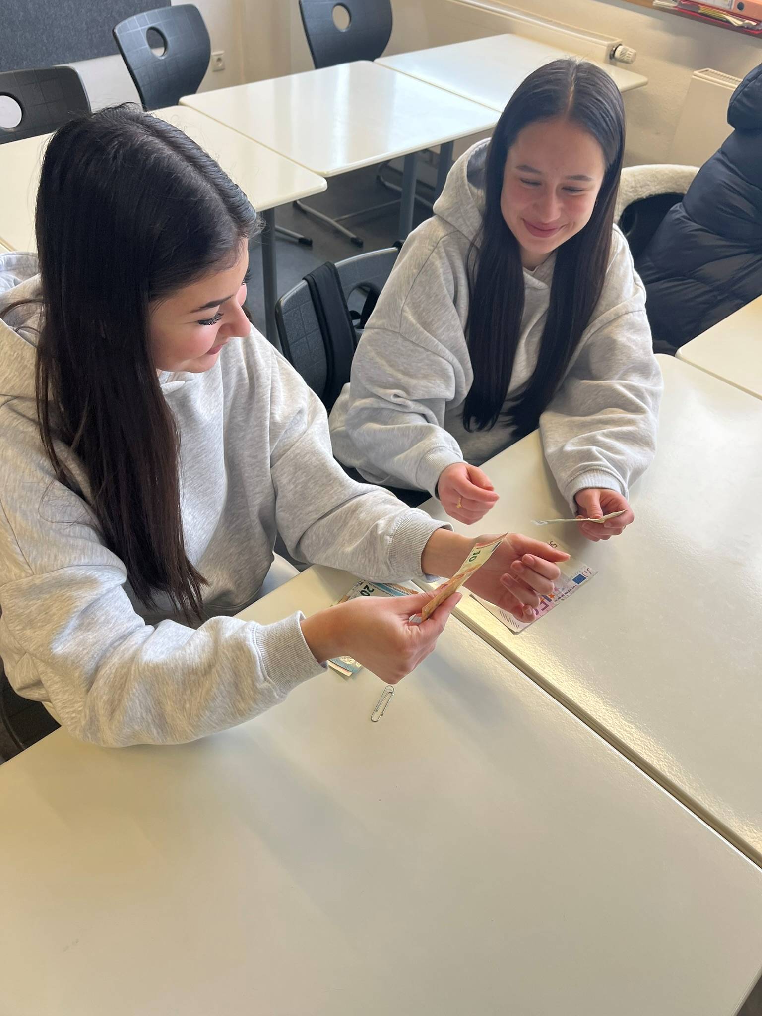 Die Schüler erhielten umfassende Informationen zu den Merkmalen von Banknoten sowie zu den unterschiedlichen Arten von Fälschungen. In einem praxisnahen Ansatz erläuterte Frau Mühlfenzl die sechs wesentlichen Prüfkriterien für große und kleine Scheine, wobei sowohl die alte als auch die neue Serie der Euro-Banknoten berücksichtigt wurde.