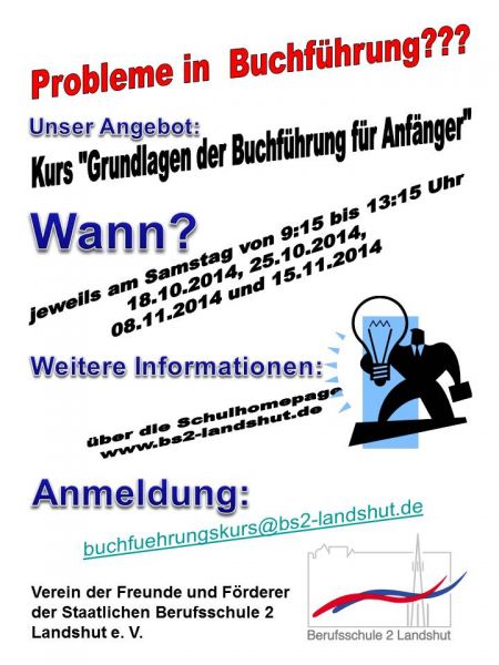 Termine und Anmeldemodalitäten für den 2. Buchführungskurs