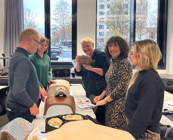 Am Donnerstagnachmittag, 16.11.2023 war die Freude noch größer, als Herr Wolf von der Firma Laerdal den Lehrkräften aus der Gesundheitsabteilung die einzelnen Funktionen der Puppen demonstrierte und jede Lehrkraft selbst Hand anlegen durfte.