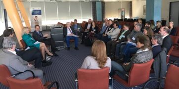 Im Anschluss wurden die gewonnen Erkenntnisse dem Parlamentarischen Staatsekretär Stefan Müller und Petra Kammerevert vom Europäischen Parlament unter der Moderation der bekannten TV-Journalistin Brigitte Büscher präsentiert.
