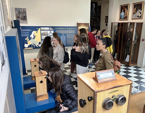 Der nächste Tag begann geschichtsträchtig mit der Besichtigung der Waffenstillstandslichtung und des Museums im Wald von Compiègne. Dort konnten die Schüler den Eisenbahnwagon, in dem die Verhandlungen nach dem ersten Weltkrieg stattgefunden hatten, sowie viele weitere Informationen zum 1. und 2. Weltkrieg erfahren. Besonders ergreifend wirken die zahlreichen Originalbilder, die im Museum das Grauen des ersten Weltkrieges aufleben lassen. Aber auch die aus der Not geborene Handwerkskunst der Soldaten in den Schützengräben faszinierte die Reisegruppe. Aus Patronenhülsen, Handgranaten und den ihnen zur Verfügung stehenden Materialien fertigten sie Öllampen, Bilderrahmen, Kerzenleuchter und vieles mehr.