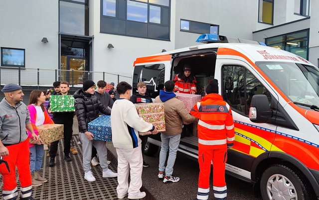 Die SMV bedankt sich herzlich für das tolle Engagement aller Schülerinnen und Schüler sowie aller Lehrkräfte, die gemeinsam fleißig Pakete mit Grundnahrungsmitteln, Hygieneartikeln und Spielzeug für Kinder gepackt haben. Am 11. Dezember konnten wir eine großartige Anzahl von 74 Paketen an die Johanniter übergeben – und das trotz der erschwerten Bedingungen aufgrund der Wetterlage und den damit verbundenen Zugausfällen inklusive Distanzunterricht. Um darüber hinaus das Engagement der ehrenamtlichen Fahrerinnen und Fahrer zu würdigen, sammelte unsere Schule zudem eine Geldspende von 190 € für den Pakettransport.