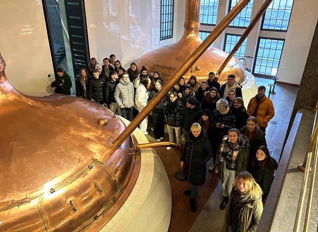 Die Abschlussfahrt der Industriekaufleute nach Hamburg war viele Jahre eine äußerst beliebte Tradition bei Schülern und Lehrern. Sollte es angesichts unklarer Corona-Regelungen und massiv gestiegener Reisepreise zum dritten Mal in Folge keine Abschlussfahrt geben? In unseren Abschlussklassen entwickelte sich eine klare Meinung zu dieser Frage. Die Rufe nach einer Abschlussfahrt wurden in den Herbstmonaten immer lauter. Zum Glück gelang es Stefanie Obermeier, mit Prag ein kurzfristig realisierbares Ziel zu finden. Eine gute Wahl, wie sich herausstellen sollte. So machten sich am 8. Dezember die Lehrkräfte Elisabeth Schmalz, Stefanie Obermeier und Florian Pfleger mit 35 angehenden Industriekaufleuten auf den Weg nach Prag. Gleich nach der Ankunft gab es eine Stadtführung zu Fuß. Die körperliche Aktivität kam offenbar gut an. Am Ende der Abschlussfahrt zeigten die Handys und Smartwatches bei vielen von uns weit über 30 Kilometer Fußweg an. Eine respektable Leistung! Die kompetente und sympathische Stadtführerin Marcela zeigte uns die historische Altstadt von Prag mit der Karlsbrücke und vielen Kirchen und Weihnachtsmärkten. Die neu gewonnenen Ortskenntnisse wurden gleich abends genutzt, um in das pulsierende Nachtleben dieser beeindruckenden Metropole einzutauchen. Tags darauf stand eine ausführliche Besichtigung der Prager Burg auf dem Programm. Nach einem Shopping-Nachmittag trafen wir uns abends alle in einem Restaurant. Auch eine Betriebsbesichtigung durfte natürlich nicht fehlen. So machten wir auf der Heimfahrt am 10. Dezember bei der Brauerei Pilsner Urquell halt. Während einer 80-minütigen Führung erhielten wir einen Einblick in die Geschichte und Produktionsprozesse dieses traditionsreichen Unternehmens. Um 17 Uhr erreichten wir erschöpft, aber glücklich Landshut.