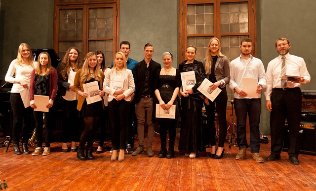 • Die klassischen, beschwingten und rockigen Töne, die den musikalischen Rahmen für die Feier bildeten. Die Musikstücke wurden von Schülern der Berufsschule 2, unterstützt von Freunden, gekonnt vorgetragen. Die musikalische Organisation und Leitung übernahm Oberstudienrat Manfred Mang.
