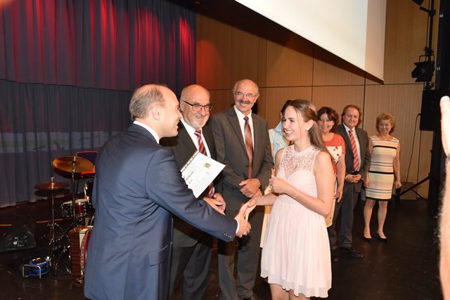Nach den Abschiedsworten von Schülersprecherin Kerl kam der Höhepunkt der Abschlussfeier - die Zeugnisverleihung. Alle Abschlussschüler wurden klassenweise auf die Bühne gebeten und erhielten feierlich ihr Abschlusszeugnis.