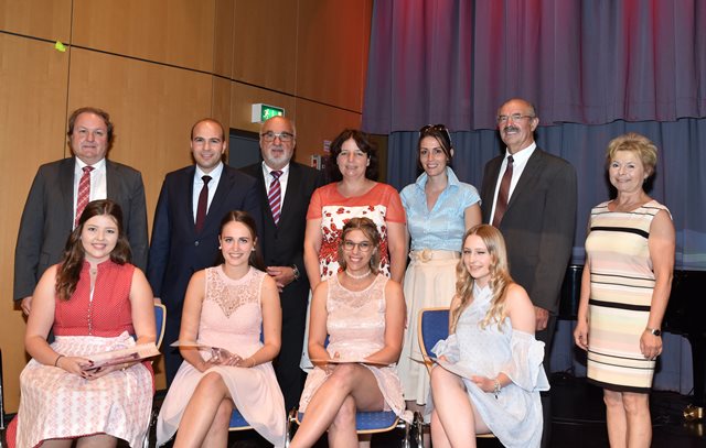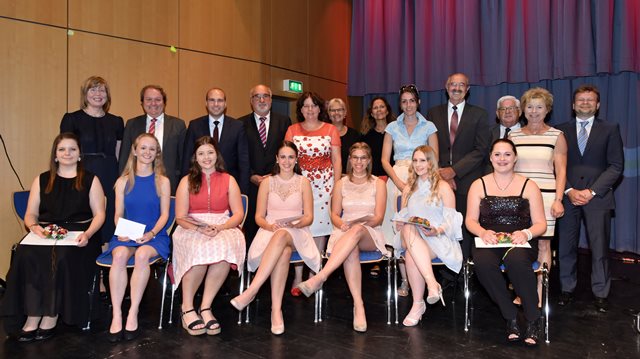 Schulleiterin Wittmann klärte hingegen auf, dass diese traurige Theorie nicht stimme. „Arbeit macht zufrieden. Wichtiger sind nur noch die Faktoren Gesundheit und Familie.“ Das Roman-Herzog-Institut hat festgestellt, dass fast die Hälfte der arbeitenden Bevölkerung zur Glückselite der Hochzufriedenen gehört, während sich nur ein Fünftel der Arbeitslosen wohlfühlt. „Arbeit und Beruf bringen natürlich Einkommen, aber auch Ansehen, soziale Kontakte, Strukturierung des Tages und Sinnstiftung.“ Elisabeth Wittmann gab den Abschlussschülern gute Ratschläge für ein zufriedenes und glückliches Berufs- und Arbeitsleben mit auf den Weg. „Nutzen Sie Ihre Neigungen und Begabungen. Neben dem angeborenen Talent, der Kultur und dem Zufall ist Fleiß nach Meinung des Autors Malcolm Gladwell eine sehr wichtige Voraussetzung!“ Wittmann riet: „Bleiben Sie neugierig und aufgeschlossen. Knüpfen Sie Kontakte und helfen Sie dem Zufall auf die Sprünge“. Zum Kontakteknüpfen sei beim Stehempfang im Anschluss an die Feier Gelegenheit. Schulleiterin Wittmann drückte die Hoffnung aus, dass die Absolventen einen Beruf gefunden haben, welcher zu „echtem Lebensglück“ beiträgt. So wünschte sie zum Schluss ihrer Rede allen Anwesenden einen Himmel, „in dem das Blau überwiegt, damit es sich im Fluss des Lebens spiegelt.“