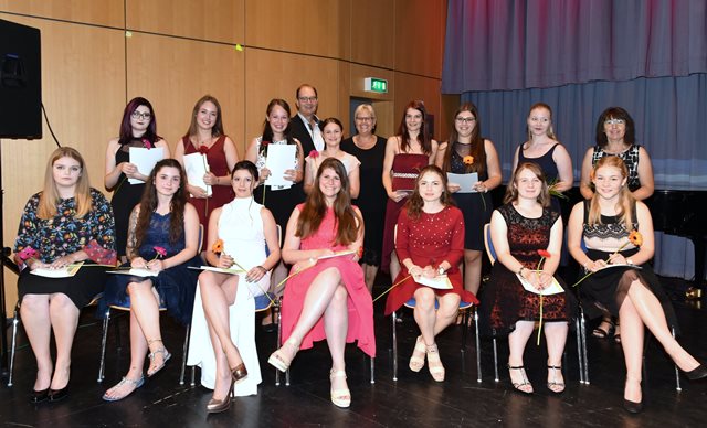 Im Namen aller Berufsschüler bedankte sich Schülersprecherin Franziska Kerl bei Schulleiterin Elisabeth Wittmann, der ständigen Vertreterin Tanja Zeis und der gesamten „Schulfamilie“. Ihr war es wichtig zu betonen, dass an der Staatlichen Berufsschule 2 Landshut nicht nur fachliches Wissen das Lehren und Lernen prägen, sondern auch gelebte Werte wie Toleranz, Mitgefühl und Engagement. Dies wird u. a. sichtbar in Projekten wie „Schule ohne Rassismus - Schule mit Courage“, der Blutspenden-Typisierungsaktion und Ausstellungen wie „Einfach menschlich“. Ihr Dank richtete sich auch an die Ausbilder sowie die Eltern und Freunde, die unterstützend und motivierend tätig waren.