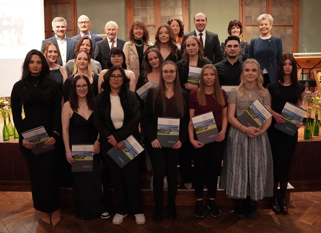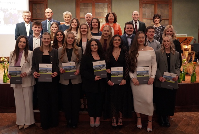 Den Höhepunkt der stimmungsvollen Feier bildeten die Zeugnisverleihung auf der Bühne sowie die Ehrung der Besten der einzelnen Ausbildungsberufe. Fünf Absolventinnen erzielten die Traumnote 1,00 im Abschlusszeugnis und wurden mit einem Geldstaatspreis bzw. dem Preis des Fördervereins und jeweils 75 € überrascht: Annika Loher, Lena Rieder, Viola Graf, Paula Schmid und Julia Thalbauer. Insgesamt schlossen 25 Absolventinnen und Absolventen ihre Schulzeit mit 1,5 und besser ab.