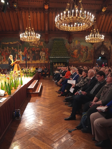 Der blumengeschmückte und bis auf den letzten Platz gefüllte Landshuter Rathausprunksaal lieferte den glücklichen Absolventinnen und Absolventen bei der Abschlussfeier der Staatlichen Berufsschule II Landshut am 24. Januar ein prunkvolles Ambiente. 221 strahlende Schülerinnen und Schüler nahmen ihre Abschlusszeugnisse in Empfang und ließen sich von ihren stolzen Ausbildern, Familienangehörigen und Lehrkräften fröhlich feiern. Viele Ehrengäste, darunter Bundestagsabgeordneter Florian Oßner und Landtagsabgeordnete Ruth Müller, wertschätzten die erbrachte Leistung aller Absolventinnen und Absolventen.