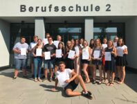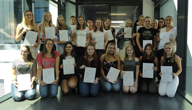 Die Schüler halten die Bescheinigungen zu folgenden Modulen in ihren Händen: