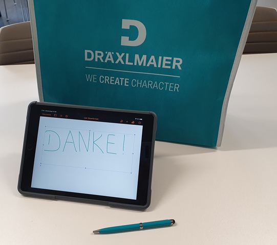 Hierbei unterstützt uns die Firma Dräxlmaier mit einer großzügigen Spende an Büromaterial. Die Ausbildungsabteilung aus Vilsbiburg ließ den Studienreferendaren eine prall gefüllte Tüte mit nützlichen Utensilien zukommen. Besonders freuen wir uns über spezielle Stifte, welche das Schreiben auf I-Pads erleichtern. Schließlich ist die Bedienung mit diesem Stift nicht nur präziser, sondern auch hygienischer im Vergleich zum Wischen mit den Fingern.