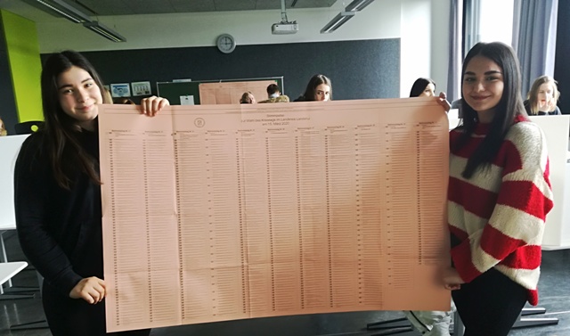 Ein herzlicher Dank geht an die Schülerinnen und Schüler für das große Interesse an der U18-Wahl und vor allem an die engagierten Wahlhelferinnen und Wahlhelfer fürs Auszählen!