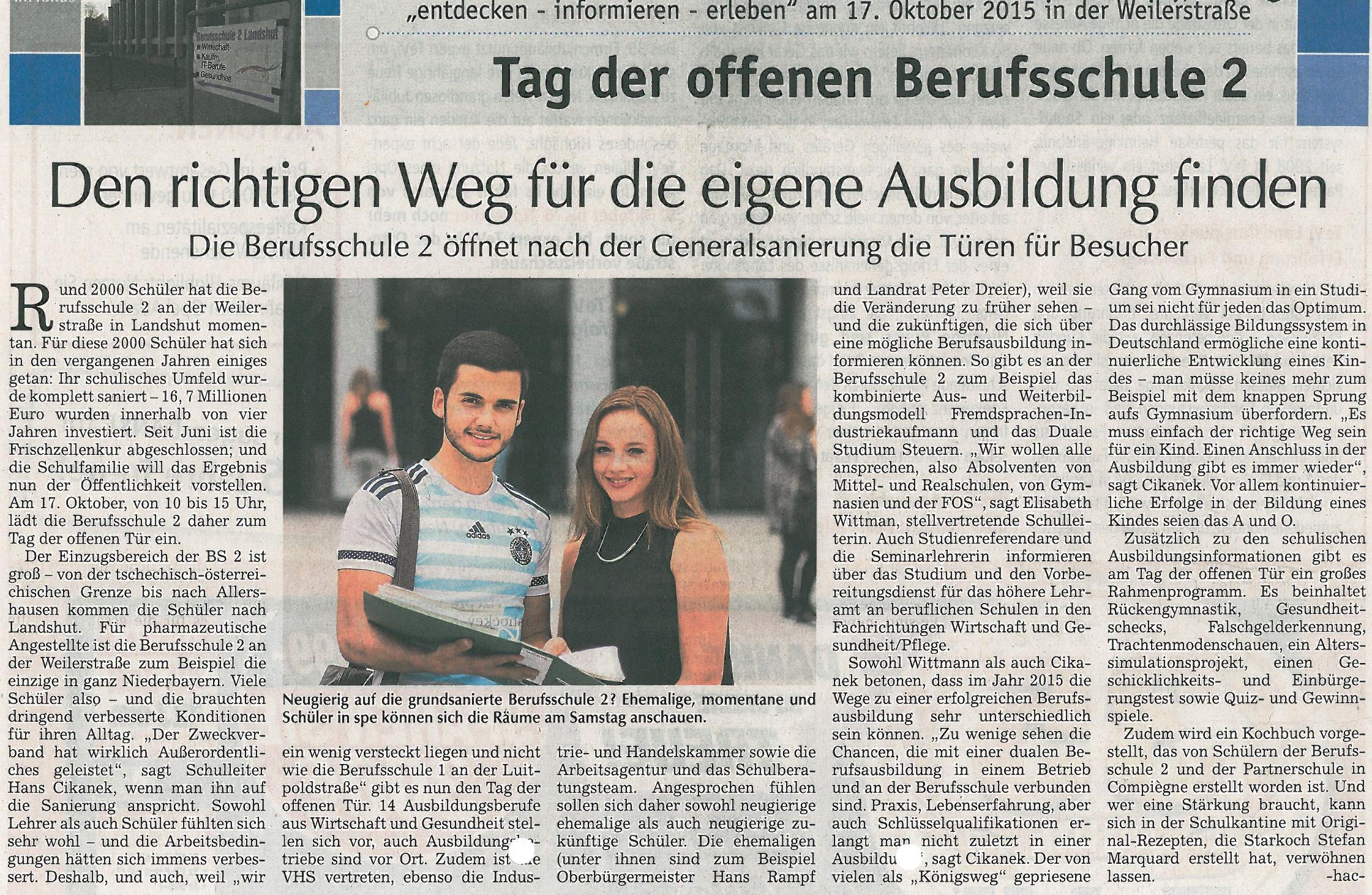 Am Samstag, den 17. Oktober 2015, war es nach 10 Jahren wieder so weit: Unsere Schule lud zum Tag der offenen Tür ein. Nachdem im Juni 2015 nach vierjähriger Bauzeit und Gesamtkosten von rund 16,7 Millionen Euro die Erweiterungs- und Generalsanierungsarbeiten erfolgreich abgeschlossen worden waren, sollte die runderneuerte und bestens ausgestattete Schule auch der Öffentlichkeit präsentiert werden ...
