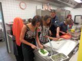 Wir bereiteten die Cafeteria für die Pause vor und bauten die Biertischgarnituren im Gartenbereich auf. Im Küchenbereich belegten wir Paninis für die kleine Pause, wickelten Wraps, schnitten und kochten Gemüse und Fleisch. Vom Vorbereiten bis zum Aufräumen und Abwaschen erledigten wir alle Arbeiten, die anfielen. Einige von uns unterstützten das Mensa-Team tatkräftig im Pausen- und Mittagsverkauf. Nach getaner Arbeit aßen wir gemeinsam Mittag. Wir durften zwischen gebratenen Wok-Nudeln mit frischen Gemüsestreifen, Kokossauce und Putenstreifen oder der vegetarischen Alternative Penne mit Gorgonzola-Sauce wählen. Abschließend setzen wir uns alle zu einem Gespräch zusammen, um den Arbeitseinsatz gemeinsam zu reflektieren.