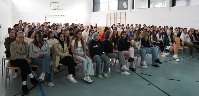 Positiv sein und den Weg zum Ziel nicht scheuen! Das waren die zentralen Botschaften von der stellvertretenden Schulleiterin Tanja Zeis an die 22 neuen Klassen bei den in der letzten Woche abgehaltenen Einführungsveranstaltungen zum Schuljahresbeginn. Von einem Schülerrückgang kann nicht gesprochen werden, ist die Schülerzahl an unserer Schule im Vergleich zum Vorjahr sogar leicht gestiegen. Damit allen Schülerinnen und Schülern der Einstieg an ihrer neuen Schule leichter fällt, stellte die Schulleitung persönlich ihre Schule zu Beginn des Schuljahres vor.