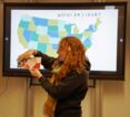 Als Warm-up spielte Lorelei mit den Schülern ein Quiz mit kniffligen Schätzfragen. Hierbei wurde uns bewusst, dass die Fläche der BRD ca. 28-mal in die USA passt, dass man theoretisch von Alaska nach Russland über das Eis der Beringstraße zu Fuß gehen könnte und, dass das Design der heutigen US-Flagge von einem Teenager stammt, der es beim Kongress einreichte, wo es 1959 auch angenommen wurde. In diesem Zusammenhang zeigte die Amerikanerin, wie Schüler in den USA jeden Morgen im Klassenzimmer die „Pledge of Allegiance“ im Chor aufsagen: „I pledge allegiance to the flag of the United States of America and to the Republic for which it stands: one Nation under God indivisible, with liberty and justice for all.“ Auch hatte die Fulbright-Botschafterin einiges an Anschauungsmaterial, wie englische Fachbücher und Postkartenmotive zur Landeskunde, im Gepäck. Auf besonderes Interesse stieß ihr Führerschein, auf dem ein kleines Herz abgedruckt ist: Jeder US-Bürger, der einen Führerschein macht, wird automatisch gefragt, ob er zur Organspende bereit sei. Bei positiver Antwort wird auf dem Führerschein gut sichtbar ein kleines Herz mit der Aufschrift „Donor“ abgebildet. Durch diese Regelung gibt es in den USA viel mehr registrierte Organspender als in Deutschland. Im Fortgang entwickelte sich ein aktiver Dialog mit Lorelei. Die Auszubildenden richteten verschiedenste Fragen zur aktuellen politischen Lage, Popkultur und kulturellen Unterschieden an die Gastrednerin. Einer der härtesten Kulturschocks für Lorelei war die deutsche Fehlerkultur mit unmissverständlichen, direkten Hinweisen auf Fehltritte. In den USA sind Fehler eher akzeptiert und werden als Lernchance betrachtet, im Gegensatz zu Deutschland, wo zu viel Zeit bzw. Energie in die Schuldfrage gesteckt wird.