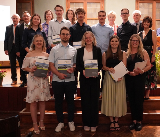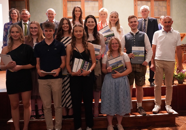 Im Anschluss wurden auf der Bühne die besten Absolventen der einzelnen Berufe sowie im Englischzertifikat mit Buchgutscheinen des Zweckverbandes Berufliche Schulen Landshut, mit Preisen des Fördervereins und mit dem Staatspreis der Regierung von Niederbayern ausgezeichnet. Die beiden letzteren sind mit jeweils 75 € dotiert und gingen an die zehn Absolventen, die im Berufsschulabschlusszeugnis den hervorragenden Notendurchschnitt von 1,00 erzielten. Insgesamt schlossen 42 Absolventen die Berufsschule mit einem Notendurchschnitt von 1,50 oder besser ab und erhielten als Ehrung eine Staatspreisurkunde bei der anschließenden klassenweisen Zeugnisverleihung.