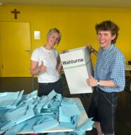 Gewählt wurde freiwillig und geheim mit Wahlkabinen und einer Wahlurne. Fleißige Wahlhelferinnen und Wahlhelfer aus der GH 10 b zählten die Stimmen aus – vielen herzlichen Dank dafür!