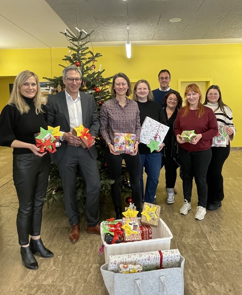 Das Kollegium der Berufsschule 2 hat zusammen mit den Mitarbeitern der Commerzbank die Aktion organisiert und Geschenke für die Kinder besorgt. Im weihnachtlichen Ambiente an der Berufsschule wurden die liebevoll verpackten Geschenke an die Verantwortlichen der Landshuter Frauenhäuser übergeben, damit sie den Kindern an Heiligabend Freude machen. Die größte Freude ist nämlich, anderen Freude zu machen! Frohe Weihnachten!