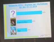 Zu Weihnachten gab es ein besonderes Schmankerl: Alle Schüler der Berufsschule 2 hatten die Möglichkeit, in der zum Kinosaal umfunktionierten Turnhalle einen Film ihrer Wahl anzusehen. Das Ergebnis der Filmentscheidung wurde jedes Mal mit Spannung erwartet und es durfte viel gelacht und mitgefiebert werden.