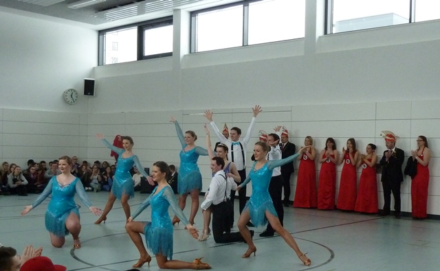 Besonders das Prinzenpaar, Ihre Lieblichkeit Isabella I. und Seine Tollität Ulrich I., verzauberte die Anwesenden mit Ihrem Prinzenwalzer zu „I believe in you“ von Celine Dion. Ein Heimspiel für Isabella Raphael, die die Berufsschule 2 noch aus ihrer eigenen Ausbildungszeit gut kennt. Auch die Showtanzeinlagen zur „Charleston Lovestory“ brachten die anwesenden Schülerinnen und Schüler zum Staunen, die teilweise zum ersten Mal eine Gardeaufführung live miterlebten. Die liebevoll zusammengestellten Kostüme machten den Auftritt zudem zu einer Augenweide.