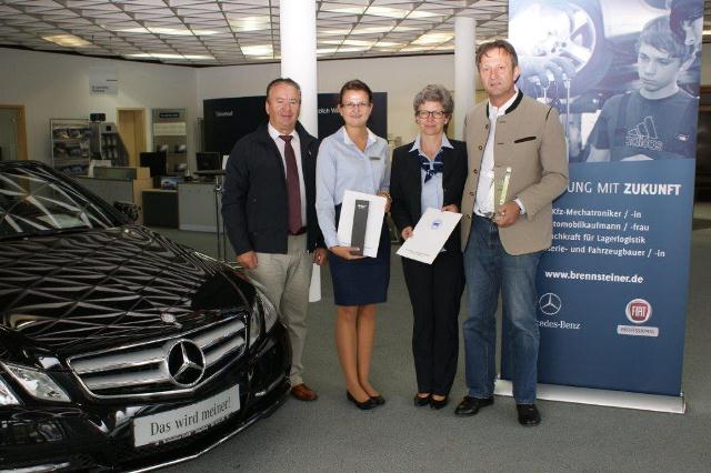 Angelika Ruder war in den Schuljahren 2011/2012 und 2012/2013 Schülerin unserer Fachklassen für Automobilkaufleute. Sie absolvierte ihre Ausbildung im Mercedes-Benz-Autohaus Brennsteiner in Dingolfing und legte im Sommer 2013 die beste Abschlussprüfung bei der Handwerkskammer im Bezirk Niederbayern-Oberpfalz ab.