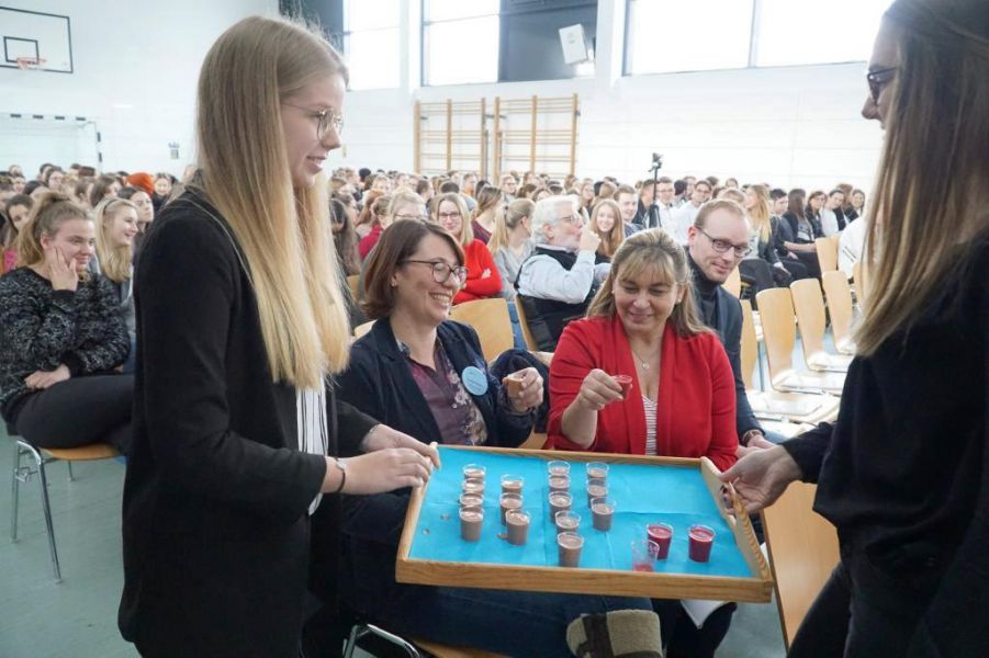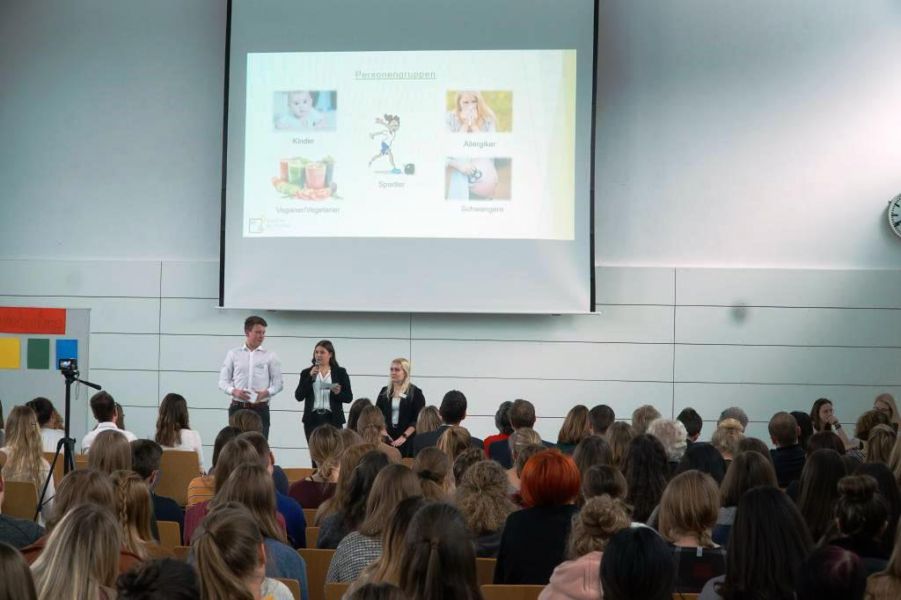 Nach den Weihnachtsferien wurden dann das Handout und die Präsentation angefertigt. Nach einigen Probedurchläufen konnten wir dann am 24.01.2019 unser Projekt zum Thema „Ernährung“ vor allen Gästen präsentieren.