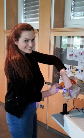 Am frühen Nachmittag informierte die Trainerin Gudrun Benteler unsere ZFA-Schülerinnen über Neuheiten im zahnmedizinischen Bereich. Dazu gehört u. a. die Clinpro Prophylaxe Produktfamilie von 3M, die die tägliche Arbeit des Zahnarztes und des zahnmedizinischen Personals unterstützen kann. Zudem erhielten die Schülerinnen Tipps und Tricks bei der Polymerisation (Aushärten von Kompositfüllungen), die sie dann sogleich mithilfe eines Lichtleiters und einer Schutzbrille an einem Dummy-Patienten (namens Oskar) ausprobieren konnten.